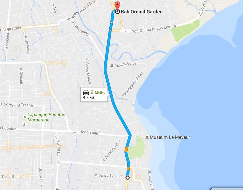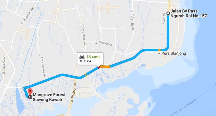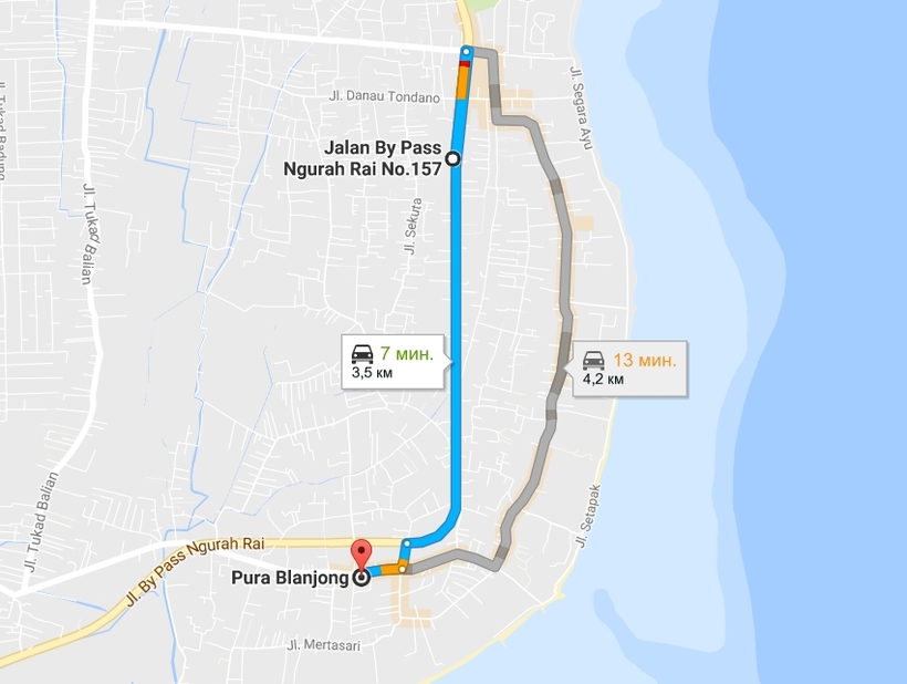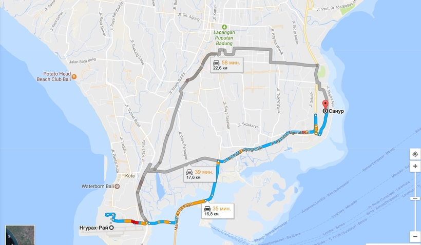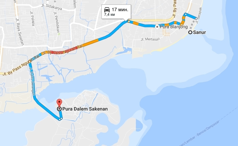 Добраться из Санура до Куты не составит труда. По стоимости поездка на такси обойдется в 5,5 USD (70 000 IDR).