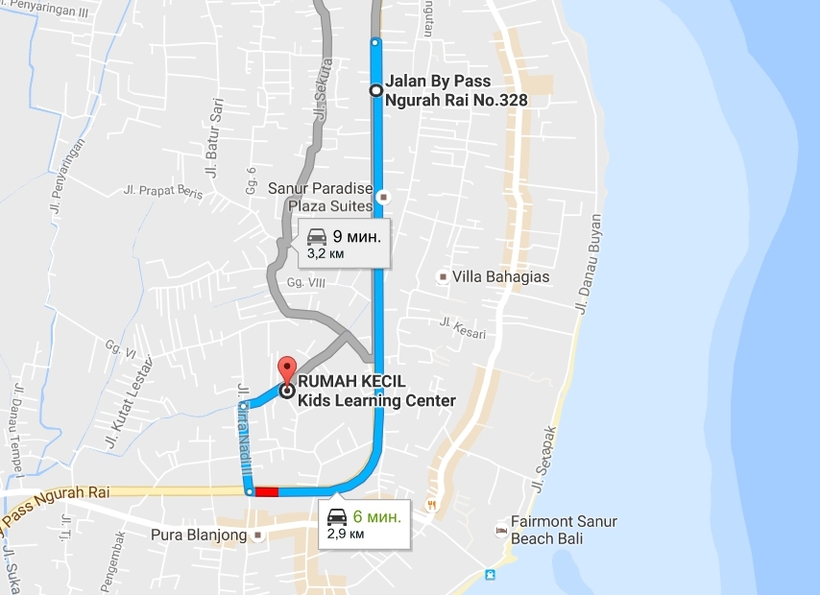 Выбрав, на какое занятие вы отдаете ребенка, уточняйте время проведения курса. Расписание можно узнать здесь.Как добраться: Jl. Danau Tamblingan, до пляжа Санура 5–7 минут ходьбы.