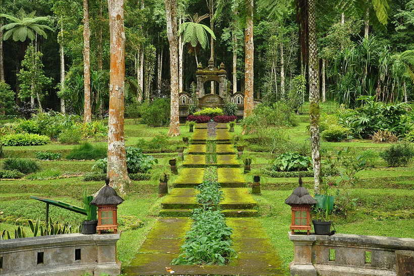 Стоимость входа в это симпатичное местечко – чуть больше 2 $ (30 тысяч рупий ), как для ребенка, так и для взрослого. На входе дают что-то вроде карточки-пропуска. Территория громадная и красивая, хоть полноценную фотосессию устраивай. Цветы, беседки, зонтики, статуи, шезлонги, прудики и даже горка для ребятни. При отеле есть кафе.