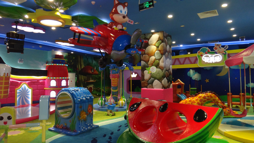 Площадку разместили на втором этаже в магазине. Напротив кафешка, так что родители могут сидеть там, а ребенок вволю играть. Есть висячий мостик, горки, качалки. На площадке много места и часто играют балийские дети. Рядом платные игровые автоматы.