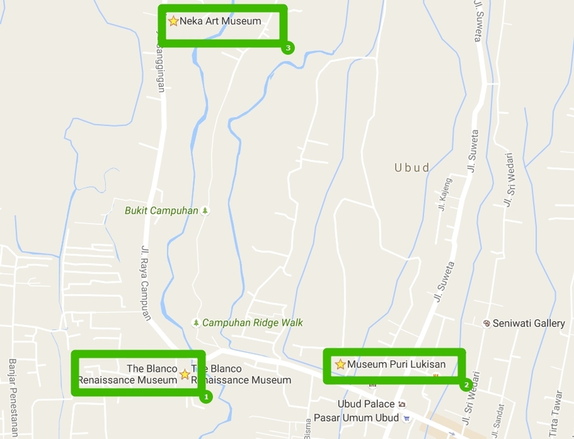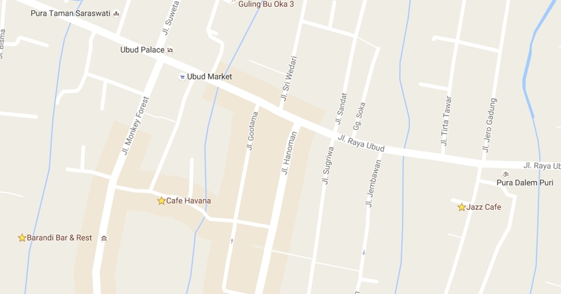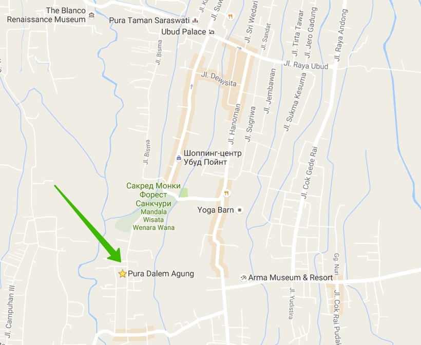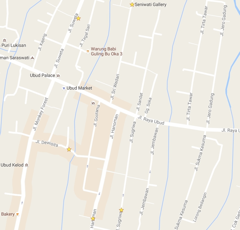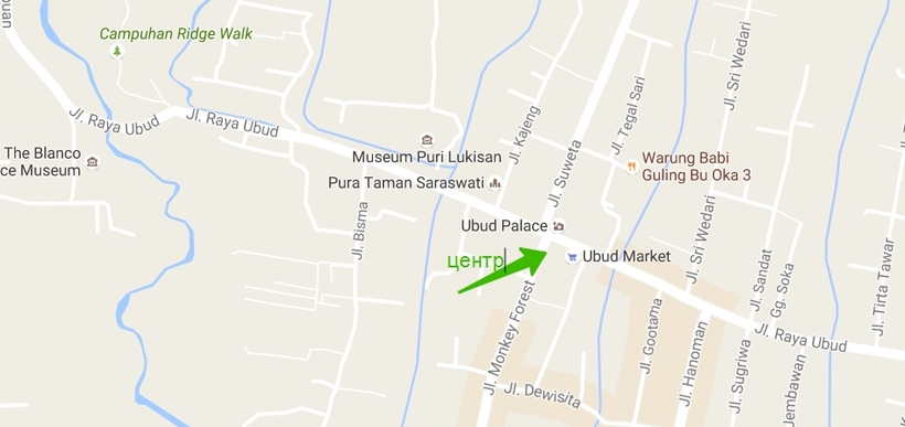 - Jl.Sugrwa\Jl/Raya Ubud (идет параллельно с Ханоман).