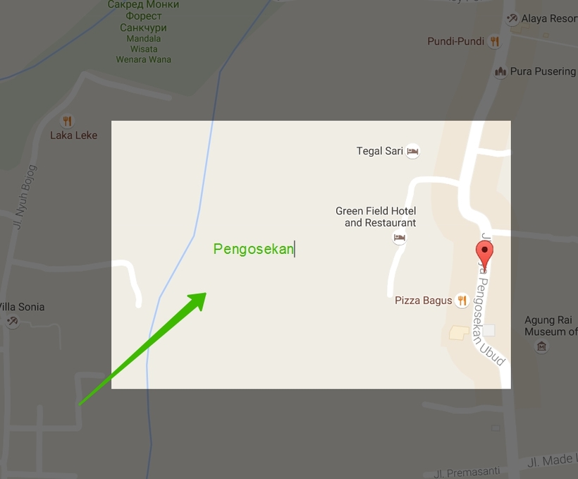 Я сообщу, что здесь хватает отелей, гестхаузов и просто вилл в аренду. Люди, приезжающие в Убуд на срок до 5 дней, обычно останавливаются в центре, ну а центр – улочки Jalan Raya Ubud и Jalan Raya Andong и прилегающие к ним переулки.
