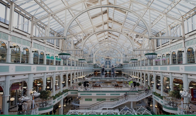 Как я уже заметил выше, основной район для шопинга – это улицы Grafton, Williams. Традиционно это престижный район в самом сердце города для представителей высшего класса, которые предпочитают жить в центре, но держаться в стороне от шума и пьяного веселья района Темпл-Бар. Большинство бутиков и магазинов известных брендов сконцентрировано именно здесь, тут же представлены магазины ирландских дизайнеров, в том числе ювелирные, несколько книжных магазинов, а также располагается один из торговых центров – Stephen’s Green, где сосредоточены 93 магазина (перечень представленных брендов можно уточнить здесь). Кстати говоря, здесь стоит побывать хотя бы только из-за выдающегося здания, в котором расположен молл.