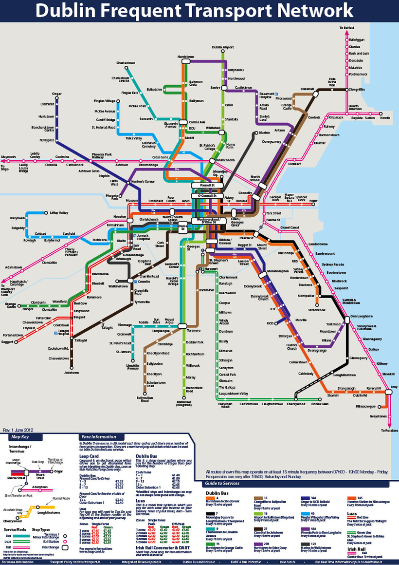 Конечно, в Дублине существует и общественный транспорт: автобусы и такси. Автобусные остановки разбросаны по всему городу в огромном количестве, иногда по четыре – пять штук на одну улицу, а такси тоже не мало – примерно 25 тыс машин.