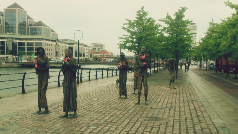 Дальше по течению сразу за Мемориальным мостом Тэлбота на северной набережной Лиффи располагается мемориал Великому Ирландскому голоду. В период с 1845 по 1849 из-за сильного неурожая население страны сократилось на 30%, большая часть умерла от голода, остальные эмигрировали.