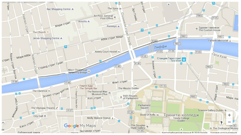 Набережные — замечательное место для пеших прогулок. Их общая протяженность составляет около 5 км от Королевского моста (Мост Шона Хьюстона ) на западе и до Мост Ист-Линк и Гранд канал на востоке. Вдоль набережных тянутся многочисленные магазины, кафе и пабы… Я бы советовала заглянуть в любой паб, чтобы прочувствовать атмосферу ирландских баров.
