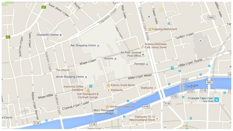 - Fujiyama находится на О'Коннел-стрит в 5 минутах ходьбы от набережной. Уютное, домашнее местечко. Средний счет тут составит около €15. Часы работы с воскресенья по среду 12:30 — 22:30, четверг — понедельник 12:30 — 23:00.