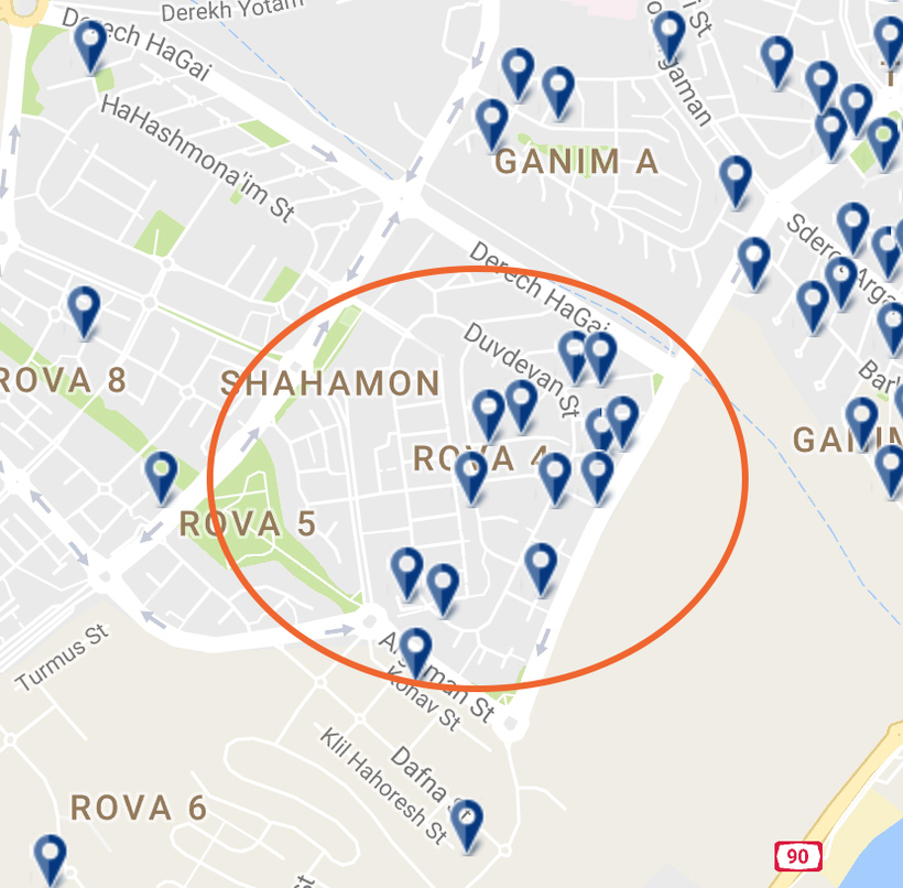 - Городской центр (районы Hamerkaz (1), Tzofit, Amdar (3).