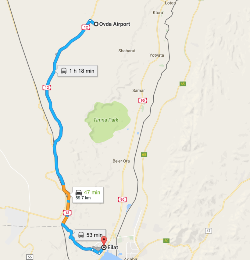 Автобус №392, следующий в Бер-Шеву, останавливается в аэропорту Овда (6 USD/25 ILS, 45 мин). Все автобуса проходят через Тимну и Хай Бар.