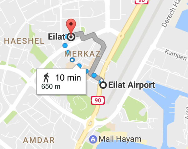 Аэропорт Эйлата обслуживает, в основном, внутренние рейсы. Вы окажетесь здесь, если летите с пересадкой в Тель-Авиве. Аэропорт Эйлата находится в самом центре города, поэтому при желании вы сможете добраться до своей гостиницы даже пешком или пересесть на городской автобус. Также многие гостиницы c 4 и 5 звездами организуют бесплатный трансфер.