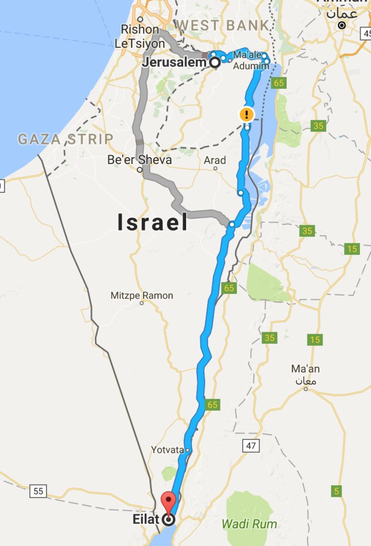 Самый короткий маршрут из Иерусалима – по трассе 90 вдоль Мертвого моря и иорданской границы.