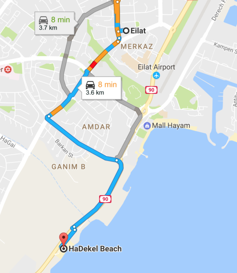 Также можно добраться регулярным рейсом с пересадкой в Тель-Авиве (в пути от 7 часов, от 200 USD/12 тыс. руб.) Таких рейсов куда больше, и билеты на них зачастую стоят дешевле. Но будьте внимательны: в зависимости от дня и авиакомпании, может потребоваться смена аэропорта пересадки. Из России самолеты прилетают в Ben Gurion, а в Эйлат вылетают из Sde Dov. В этом случае вам придется доехать от одного до другого на поезде (27 минут, 3,2 USD/12 ILS) или взять такси (20 минут, 42,6 USD/160 ILS). В двух словах, для экономии сил и времени выбирайте билет с пересадкой в том же аэропорту.