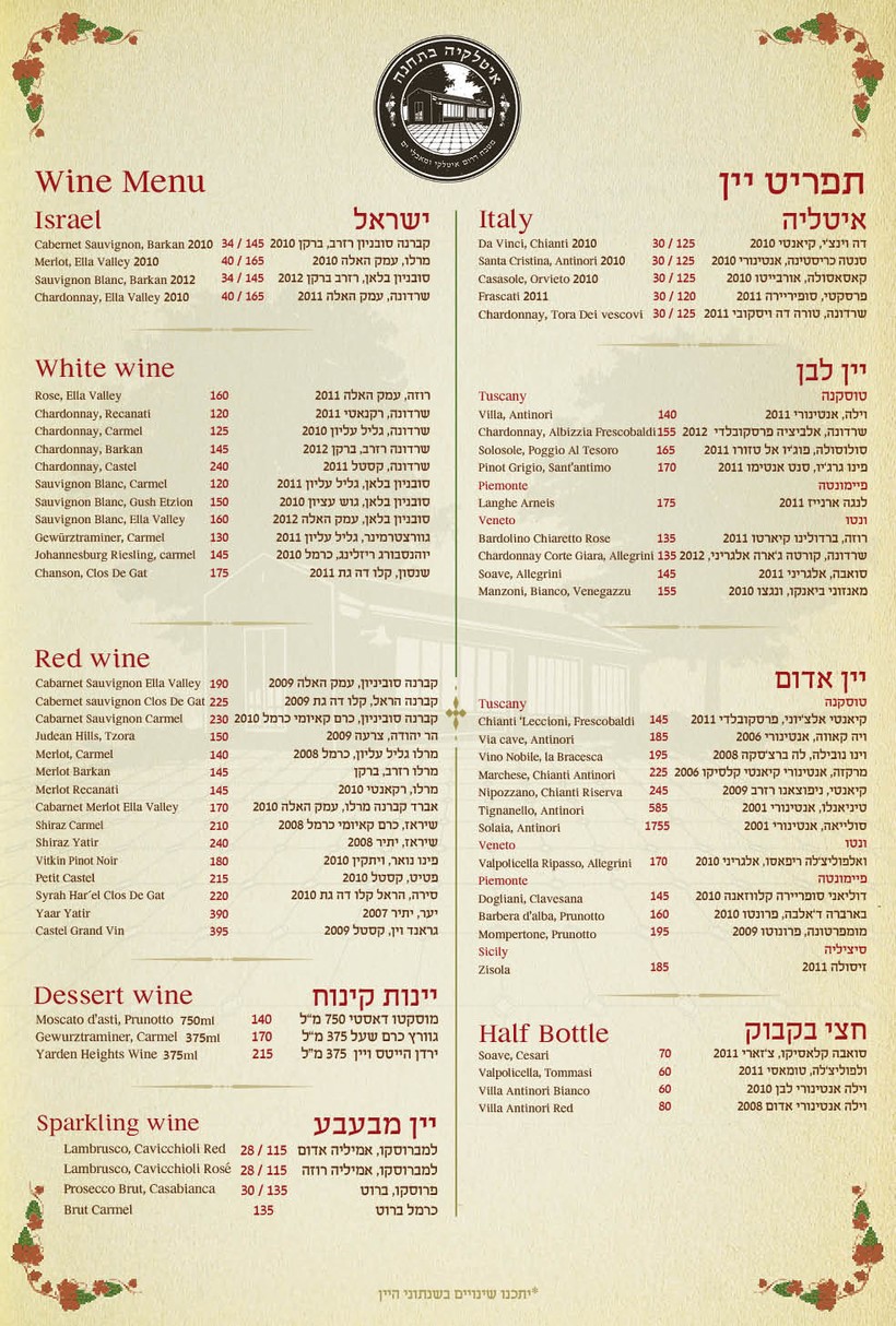 Второй нюанс заключается в том, что в большинстве заведений Тель-Авива меню представлено на иврите и английском языках. Иногда даже в одном буклете.