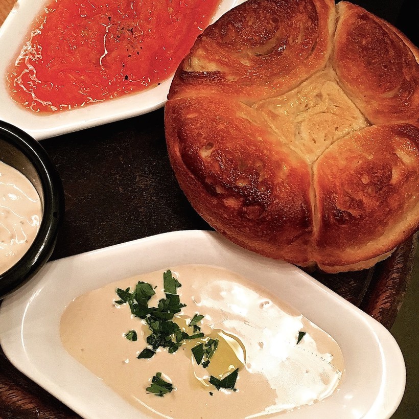 В нем, в первую очередь, поражает внутреннее убранство. Внутри ресторан выглядит как классическая тель-авивская улица: настоящий бульвар Ротшильда, спрятанный в заведении! Деревья, скамейки — всё создает атмосферу того, что вы находитесь на улице.Во-вторых, все предлагаемые блюда израильской кухни просто шедевральны! Например, здесь подают нежнейшую куриную грудку с бататом в яблочном сидре с орехами. Впечатляет?
