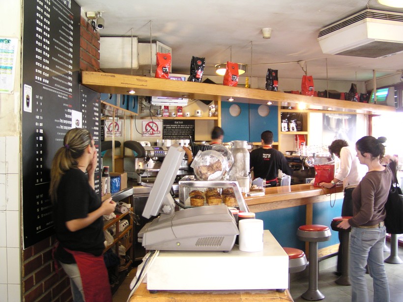 Цены в ресторане не из самых низких (порядка 20–25 EUR на человека), но оно того стоит! - Aroma Espresso Bar. Или «сеть ароматных кофеен», как её называют сами жители Тель-Авива. Эти кофейни расположены по всему городу. Одна из лучших, по моему мнению, находится в торговом центре «Дизенгофф молл», в начале одноименной туристической улицы.