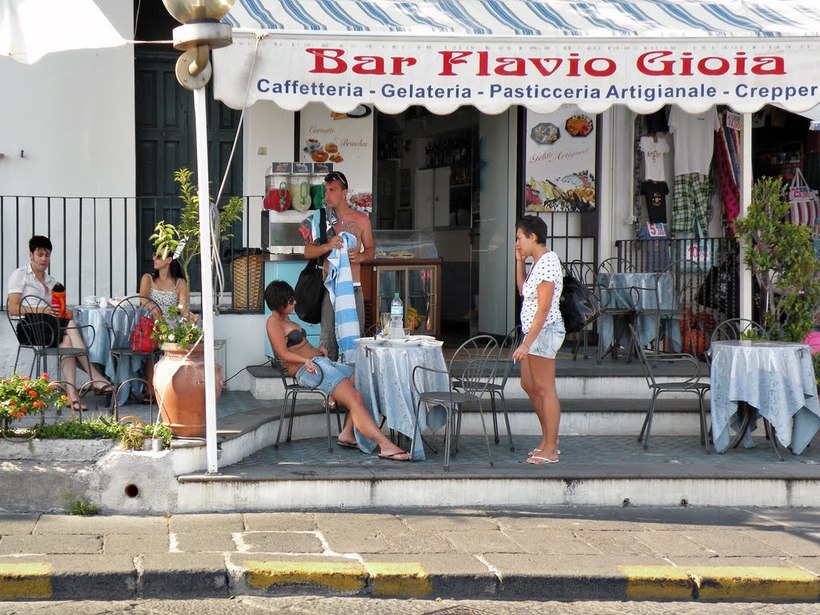 Bar Flavio Gioia, напротив главного причала, предлагает лучшее мороженое в городе. Здесь также можно перекусить в ожидании автобуса или парома.