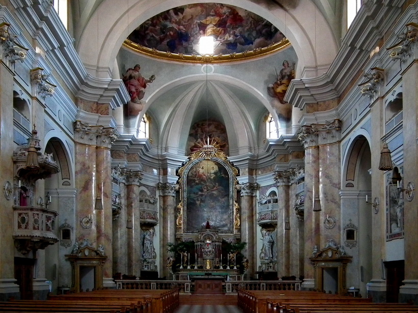 - Во-первых, это аббатство Мюри Гри и церковь Святого Августина. На самом деле это целый архитектурный комплекс, действующий еще с XV века. На протяжении нескольких столетий аббатство подвергалось разорению, восстановлению — и так несколько раз подряд, пока в XIX веке туда не были переселены изгнанные из Швейцарии бенедиктинцы. После этого в истории аббатства была открыта новая глава, монахи начали производить вино, которое стало популярным по всей стране. Церковь Святого Августина была пристроена к уже существующим зданиям только в XVIII веке. Обратите внимание на фрески внутри — они поистине роскошны.