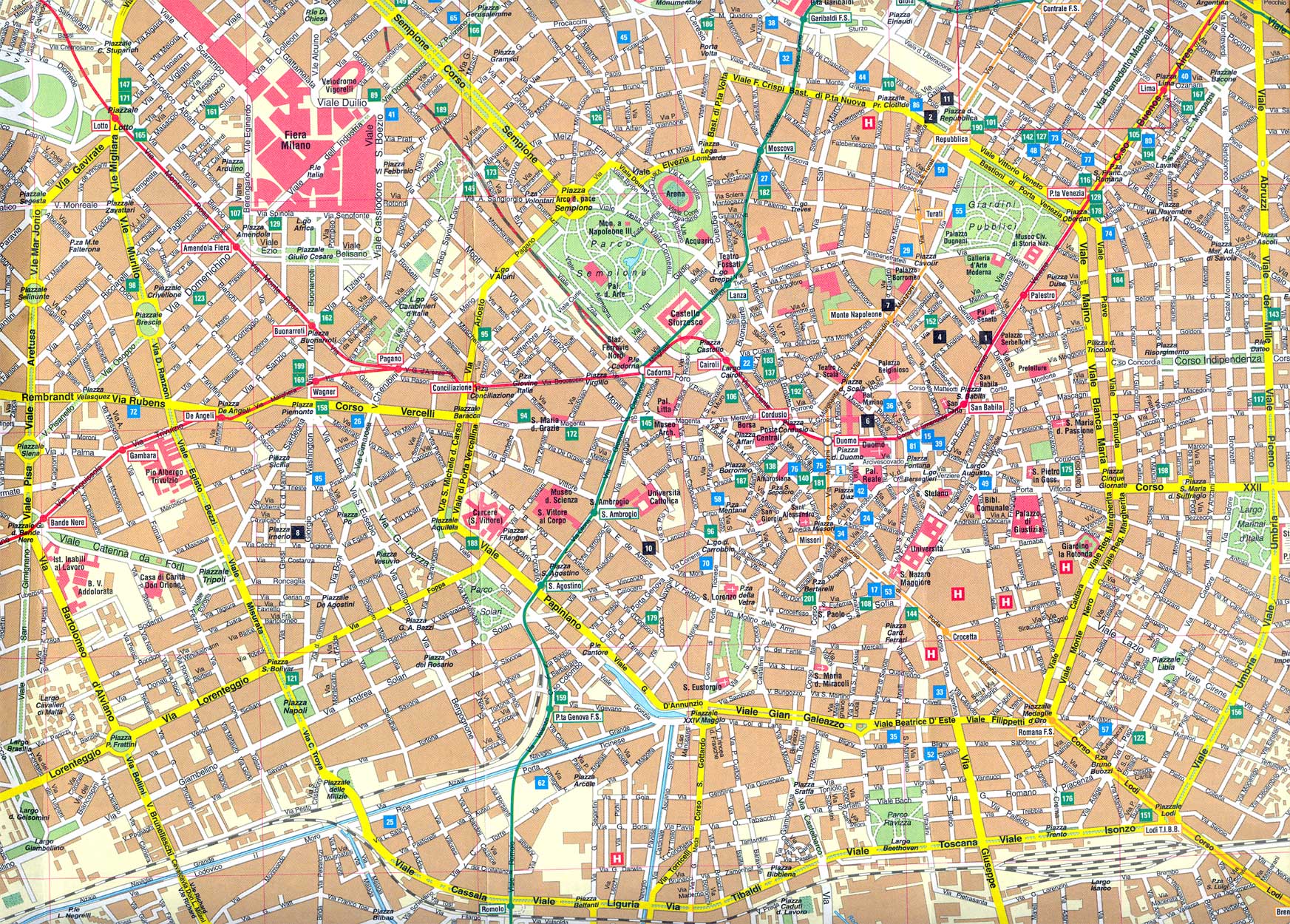 В списке популярных карт можно посмотреть карту Милана на русском с достопримечательностями. Для скачивания карт достаточно щелкнуть мышкой по изображению.