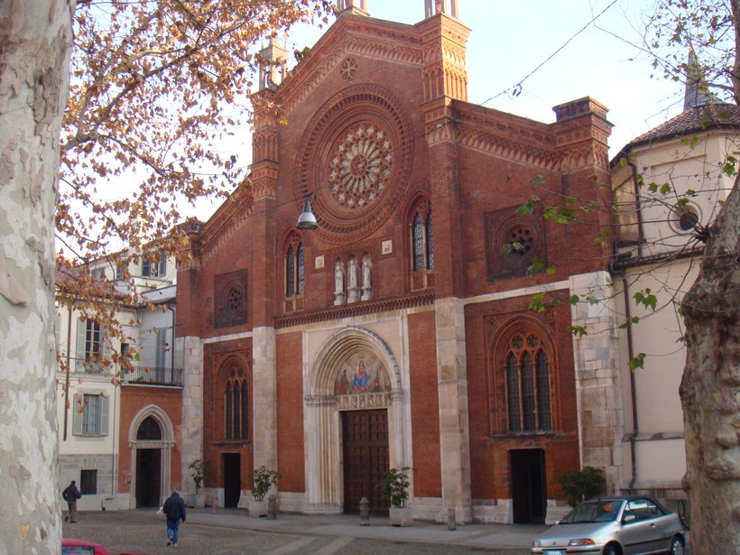 Через несколько кварталов вниз по улице Торино по правую руку от вас будет еще одна элегантная церковь – Chiesa San Giorgio или церковь Святого Георгия. Её фасад облицован светлым мрамором, а внутри стены украшены невероятно яркими картинами с изображением библейских эпизодов.