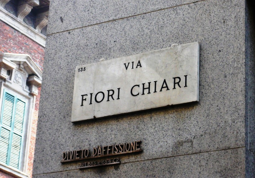 Прогулки по Брере чудесны и атмосферны. Вот где, по-моему, истинная Италия. Если встать на перекрестке после Пинакотеки, c одной стороны пойдет улица Via Fiori Oscuri, а с другой Via Fiori Chiari, то есть улица Светлых Цветов и улица Тёмных цветов. Очень поэтично.
