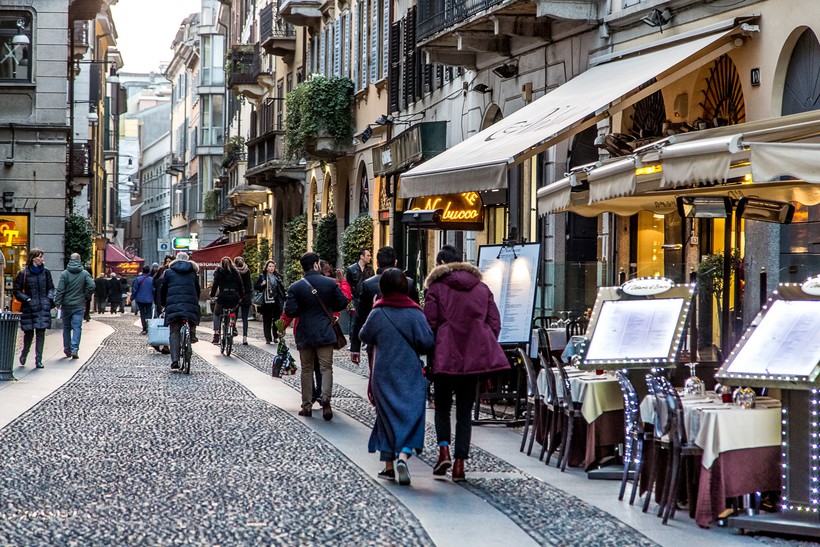 Вечером здесь бывает не протолкнуться, особенно, по праздникам. Когда в Милане в этом сентябре проходила традиционная неделя моды, на Корсо Комо яблоку было негде упасть. Да и в обычное время район довольно оживленный.
