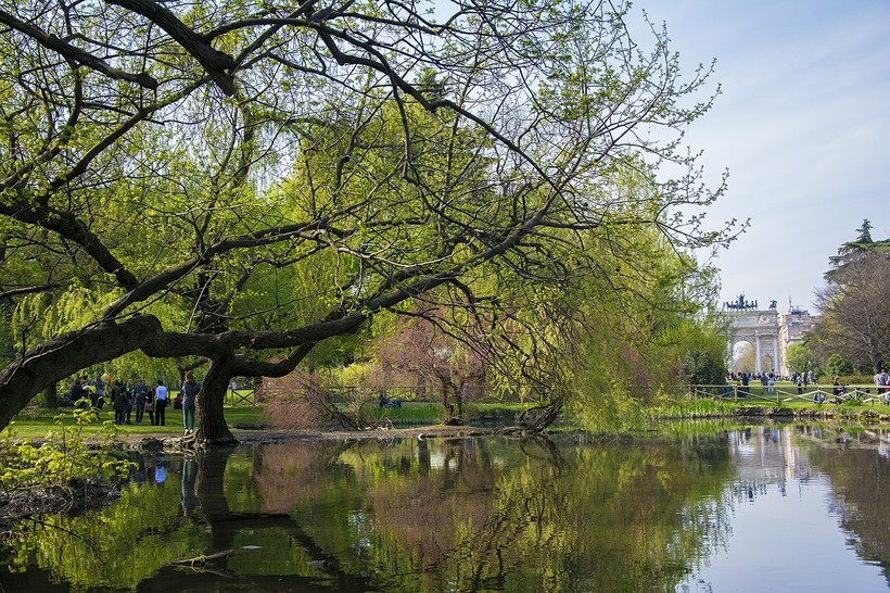 Покинув территорию замка, вы переходите через каменный мост и попадаете в главный парк Милана – Parco Sempione.