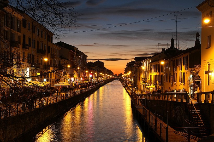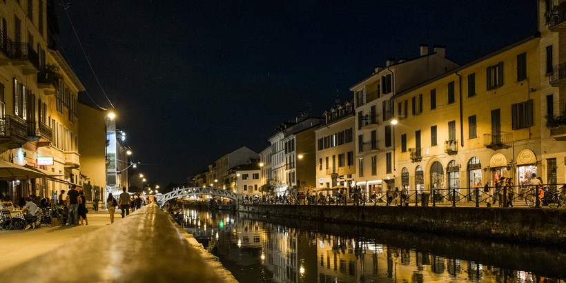 После заката квартал Навильи только просыпается. Оба берега канала усыпаны барами, ресторанами, открытыми террасами. Уличные огни отражаются в водах каналов и создают яркую и праздничную атмосферу. Здесь каждую ночь бурлит вечеринка – много молодых людей приходят сюда на ужин, вечерний аперитив (подробнее можно прочитать об этом в статье о кухне Италии) и тусовку. Район довольно популярен у туристов, и публика здесь, я скажу, са-а-амая разнообразная.