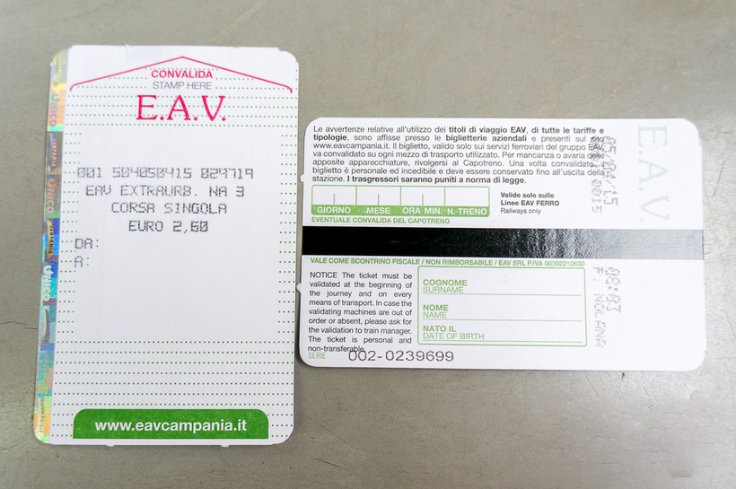 Линия 2 обслуживается компанией TrenItalia. Стоимость проезда варьируется в зависимости от станции, на которую вам надо, билет выглядит как Чек с QR-кодом.