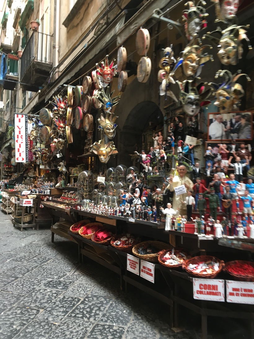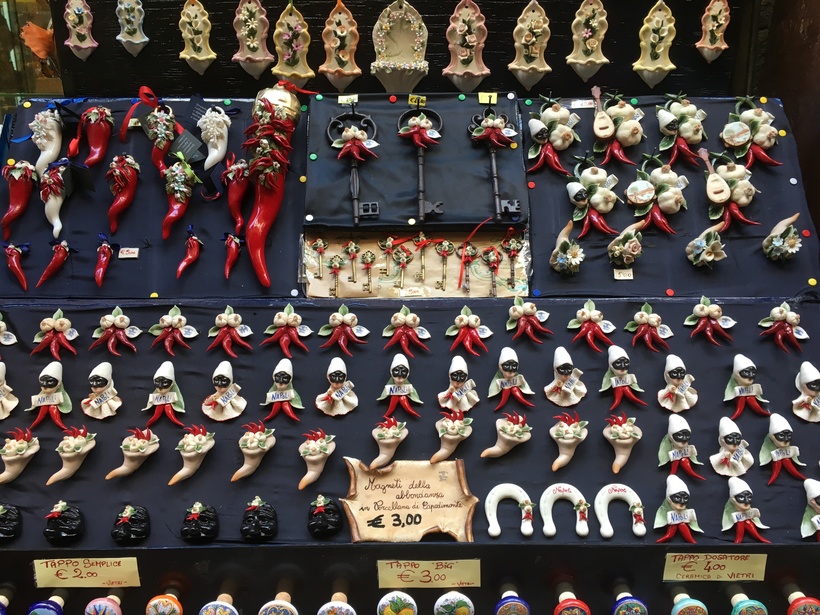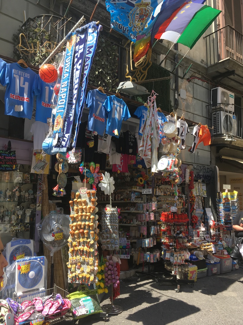 Фанатам футбола будет интересно множество сувенирной продукции, связанной с местной командой Napoli. Шарфики, кружки и многое другое продается на каждом шагу.