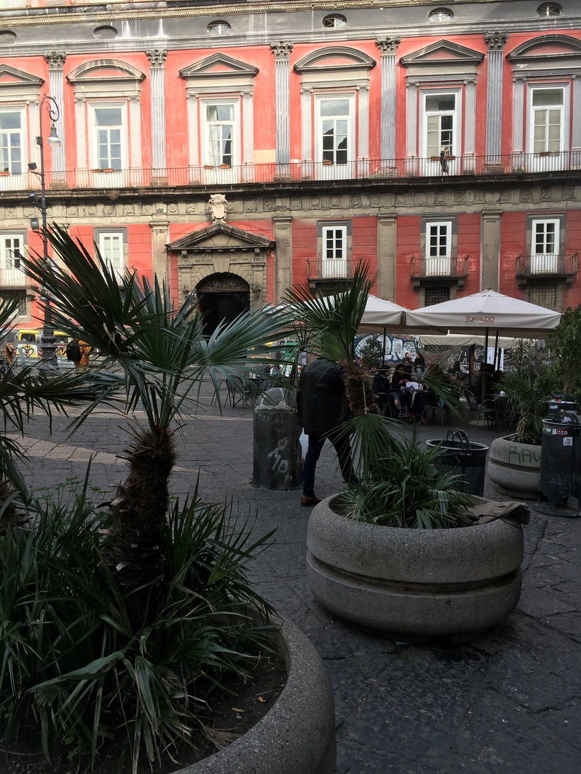 - 11:00 — из Квартьери Спаньоли вы выйдете прямо на виа Толедо. Отправляйтесь вниз, в сторону моря. По дороги можно перекусить в одной из джелатерий, или съесть пиццу фритту в Antica Pizza Fritta da Zia Esterina Sorbillo. Остановитесь на пьяцца Плебесчито и насладитесь красотой Базилики и Королевского дворца. Такая прогулка, с учетом перекуса, займет у вас около 1 часа.