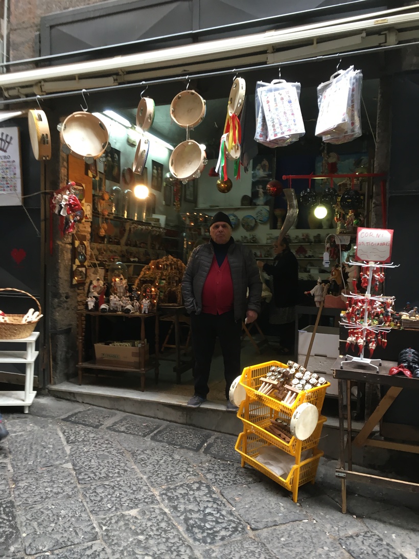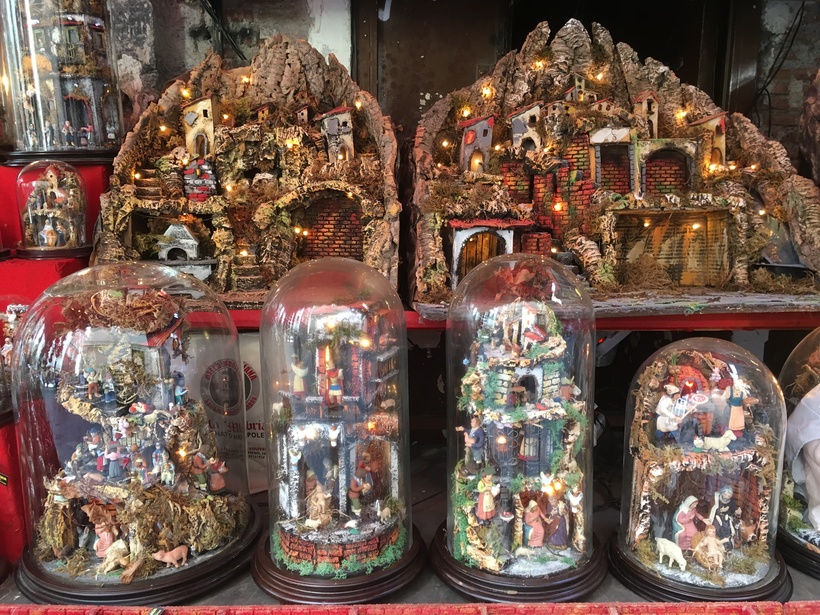 Неаполь славится своими сувенирами ручной работы, которые продаются в Историческом Центре, на улицах Сан Григорио Армено, Спакка Наполи и других. Чаще всего здесь можно купить маленькие красные перчики cornicini, выполненные из разных материалов — они считаются символами удачи и достатка. Они стоят от 0,50 EUR за штуку, в зависимости от размера. Такие перчики можно встретить даже на кухнях местных жителей. Еще отсюда можно привезти миниатюрные фигурки людей и животных, которые делаются специально для рождественских домиков-сценок. Любовь неаполитанцев к местному киноактеру Тото неисчерпаема — тут продается огромное количество сувениров с его портретами, и даже рукотворные статуэтки.