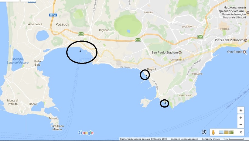 Все просторные хорошие пляжи располагаются в соседних небольших городах, таких как Баньоли (Bagnoli)( на карте 2) или Поццуоли (Pozzuoli) (на карте 1) , в которые легко добраться на поезде или машине. Обычно там есть платная и бесплатная зоны. В платной, конечно, чище, меньше народа, и стоят красивые лежаки. В бесплатной зоне всегда можно найти раздевалки и магазинчики, где продают еду, прохладительные напитки, дают в аренду лежаки. На всех пляжах темный вулканический песок, а значит, там спокойно можно устраиваться на простых полотенцах.