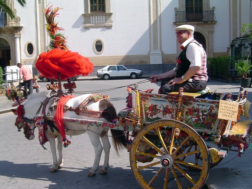 - Полюбоваться на Carretto Siciliano на одном из перекрестков, а потом прокатиться по центру города на этой расписной тележке с веселым возницей.