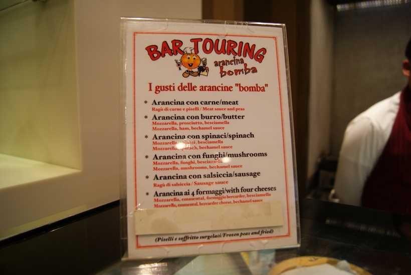 - BAR TOURING Формат: бар, очень приличное место. Что попробовать: аранчини и сладости. Адрес: Via Lincoln, 15, рядом с Ботаническим садом. Цена: от 1,50 EUR