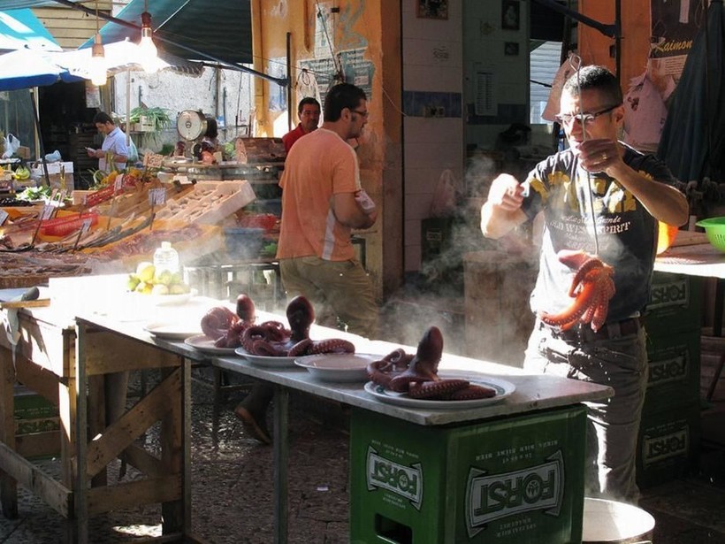 - Заглянуть на один из рынков, купить горячего хлеба, огромных оливок, свежей рыбы, оливкового масла, белого вина и приготовить себе обед. Или хотя бы приготовить бутерброд!