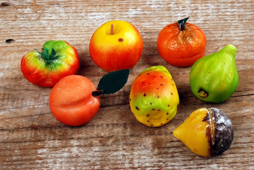 - Марципановые печенья в виде фруктов, Frutta Martorana (цена: от 15 EUR за килограмм)
