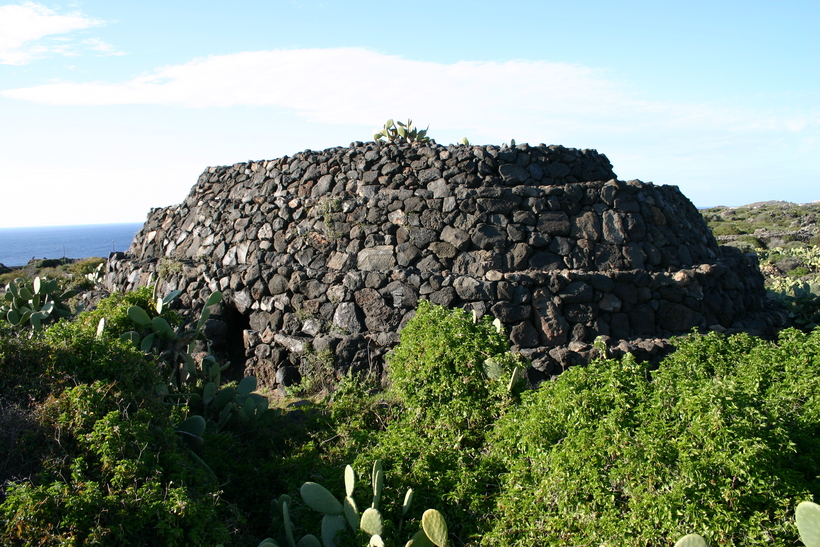 Пантеллерия знаменита типичными сельскими домами-даммузо необычной формы. Эти уникальные жилища — наследие арабского периода — построены из местного вулканического камня. Меня поразила гениальность этого эко-дома. Даммузо кубической формы, с круглыми арками, крыша его кругленькая, выкрашена в белый цвет. Такая форма крыши позволяет собирать дождевую воду, защищает даммузо от перегрева и сохраняет прохладу в доме без кондиционера.