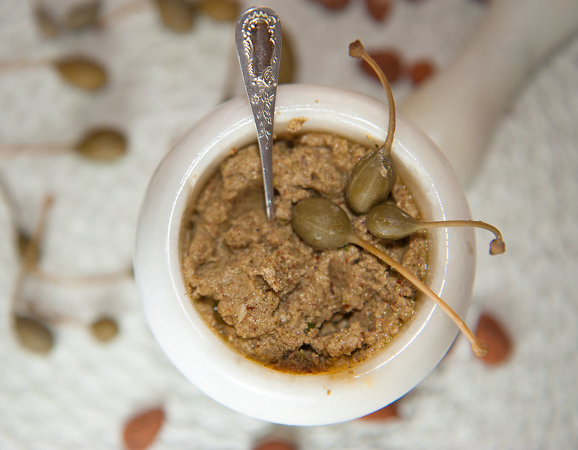 паштет из оливок и каперсов — измельченные каперсы и оливки, заправленные специями и травами. Местная закуска, которую можно мазать на хлеб или использовать как соус-заправку к пасте.