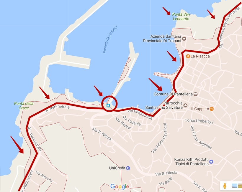 Расстояние от аэропорта Пантеллерия до Пантеллерия — 3 км