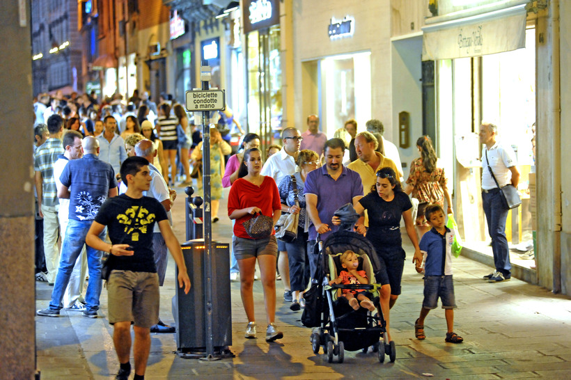 Большая их часть сконцентрирована в центре. Хотелось бы вас предупредить, что не все магазины там открыты круглосуточно. Например, в четверг во второй половине они всегда закрываются. Таким образом итальянцы уделяют больше внимания своим личным делам и проводят больше времени в семейном кругу. Обеденный перерыв достаточно длинный — с 12:30 до 15:30. Ну а в воскресенье, как и в любой другой католической стране, тоже все закрыто.