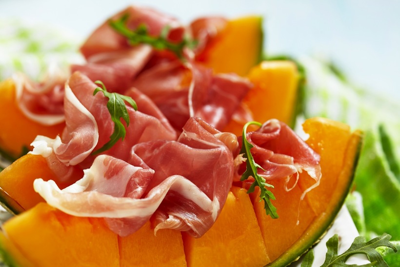 Для меня было очень странно увидеть блюдо из прошютто крудо и дыни (Prosciutto Crudo e Melone). Оказалось очень даже ничего!