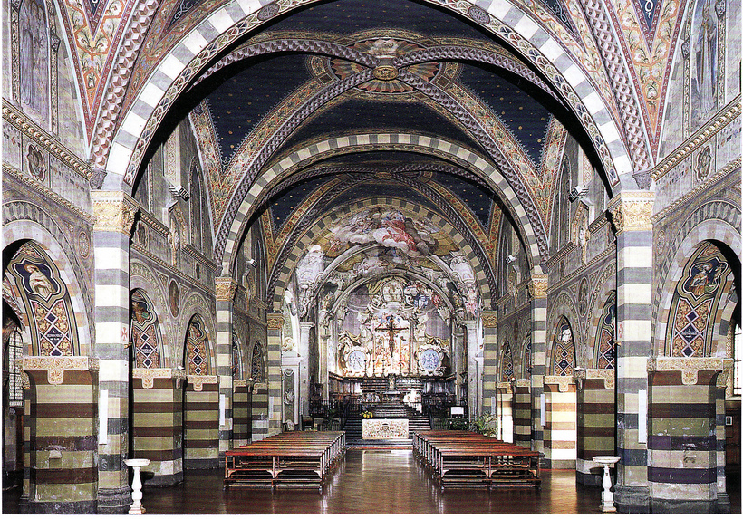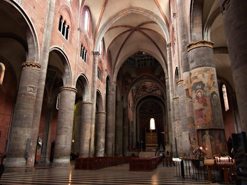 В интерьере базилики сохранились фрагменты фресок второй половины XIV века, а также росписи, выполненные кремонским мастером Джованни Баттиста Тротти.