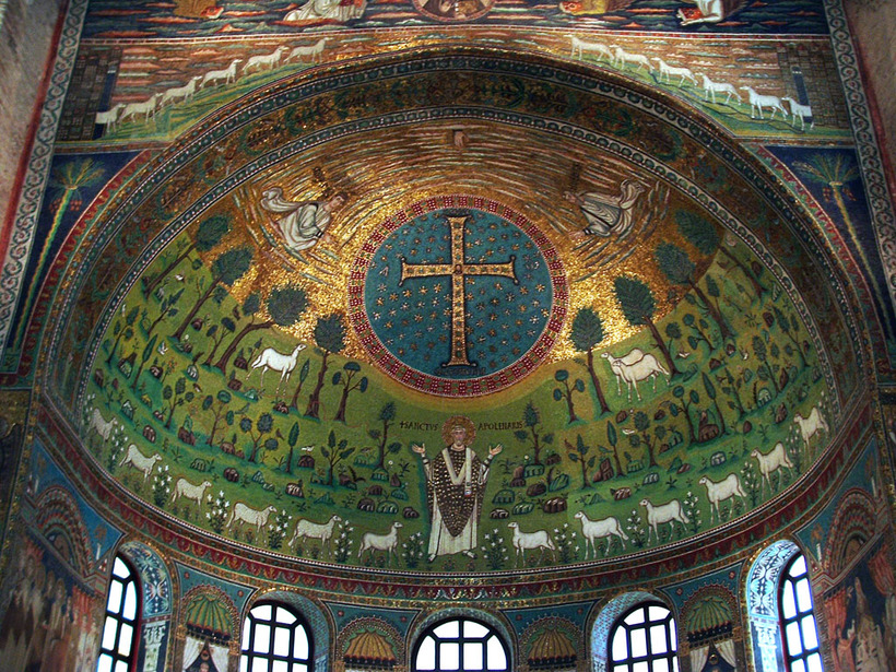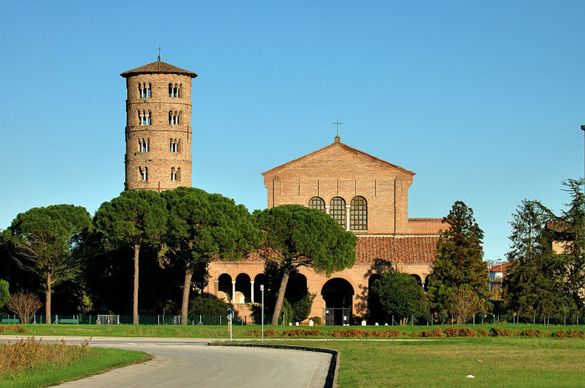 - Базилика Сант-Аполлинаре-ин-классе (Sant'Apollinare in Classe) была построена в 16 веке на месте захоронения одного из епископов города. В ней можно посмотреть самые новые мозаики. Церковь находится не в центре города, поэтому в нее есть смысл ехать (а это около 5 км. от центра), только если у вас достаточно времени в Равенне. В противном случае, советую сконцентрироваться на остальных достопримечательностях. Входной билет обойдется в 3 EUR.