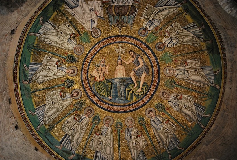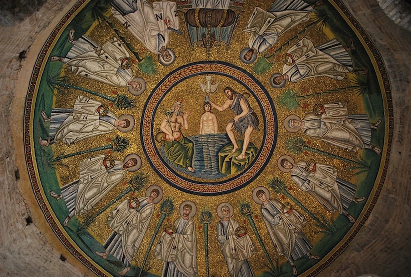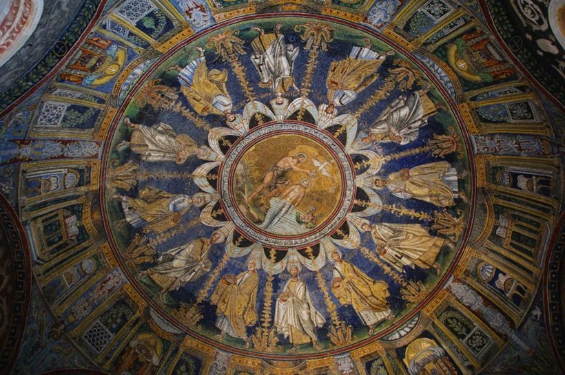 - Неонианский Баптистерий (или иначе православный) — самое старое здание Равенны - так же известен своими мозаиками. Но и без них, там, в целом, очень красиво внутри.