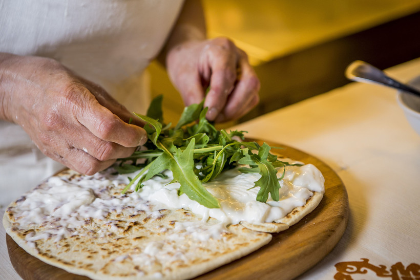 - Squacquerone di Romagna — нежный мягкий традиционный сыр этого региона. Обычного его подают с итальянской лепешкой — пьядиной. Также, бывает, туда добавляют рукколу, помидоры или прошутто.