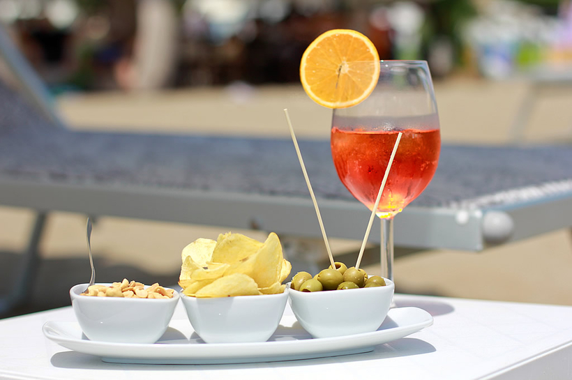 Перед ужином, обычно около 18 часов, в итальянских барах начинается aperitivo. Вы заказываете коктейль (традиционно это может быть Aperol или Campari Spritz), к которому вам подают закуски. Стандартно это чипсы, орешки и оливки, но так же могут быть мини брускеты. Есть даже бары, где на aperitivo предлагают целый буфет из закусок. В итальянские бары я хожу именно за этим :) Но выпить там что-то после ужина тоже возможно.