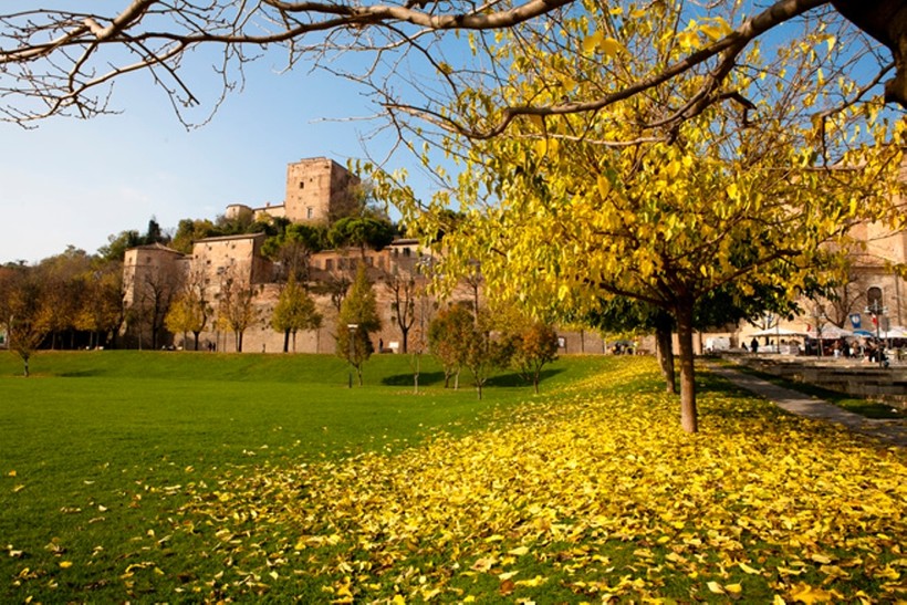 - Парк 25 Апреля (Viale Tiberio). Этот большой парк раскинулся посреди исторической части города на берегу реки Мареккья. Он был организован здесь в 70-х годах прошлого века на месте естественного разлива реки. Не стоит, пожалуй, говорить, что это одно из любимых городских мест не только туристов, но и горожан. Здесь можно укрыться от летнего зноя под естественной тенью деревьев, а по велосипедной дорожке запросто доехать до морского побережья. На территории есть зоны с детскими площадками, спортивными тренажерами, а также место для выгула собак. Парк открыт круглый год.
