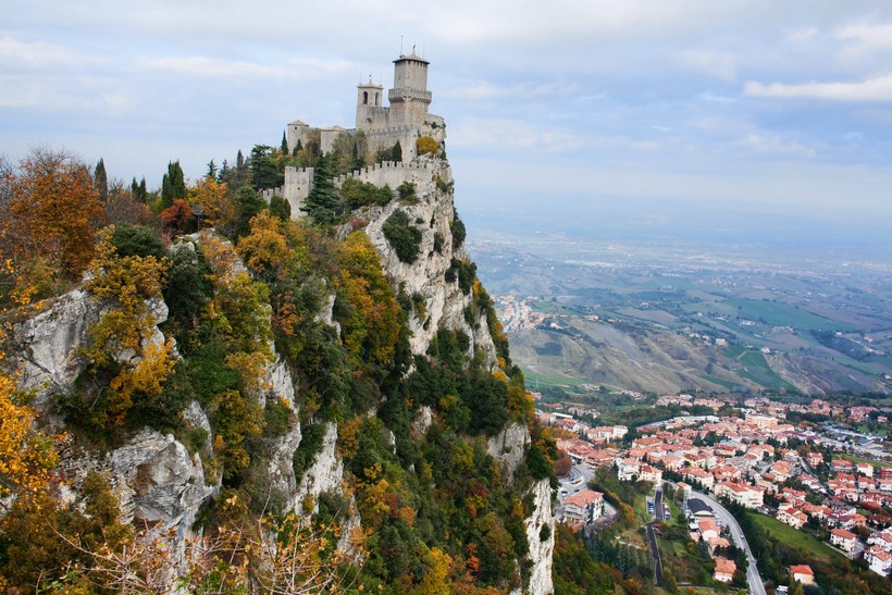От Римини до самого центра карликового государства Сан-Марино — горы Монте-Титано — всего 30 минут езды на автомобиле. Жители его приветливы, но чужестранцев не любят, именно поэтому так трудно стать гражданином Сан-Марино. Туристы едут сюда для того, чтобы скупить сувениров и прочего товара, который обычно любят привозить из-за границы. Такой ажиотаж связан с тем, что цены здесь на 20% ниже, чем в среднем в Италии. На горе можно купить местные вина и ликёры, монеты с изображением города. За серьёзными покупками следует отправляться в крупные торговые центры, которые расположены вдоль границы государства. Но перед этим осмотрите сам город. Одноимённая столица расположена немного ниже вершины горы Монте-Титано, а очертания города формируют три башни: Гуаита — самая древняя, относится к XI веку, Честа и Монтале. Поднимитесь на башни и взгляните на Сан-Марино с высоты птичьего полёта. На главной площади находится правительственный дворец, перед которым возвышается статуя свободы. Также здесь есть несколько музеев, монастырь капуцинов и достойная внимания базилика Сан-Марино.