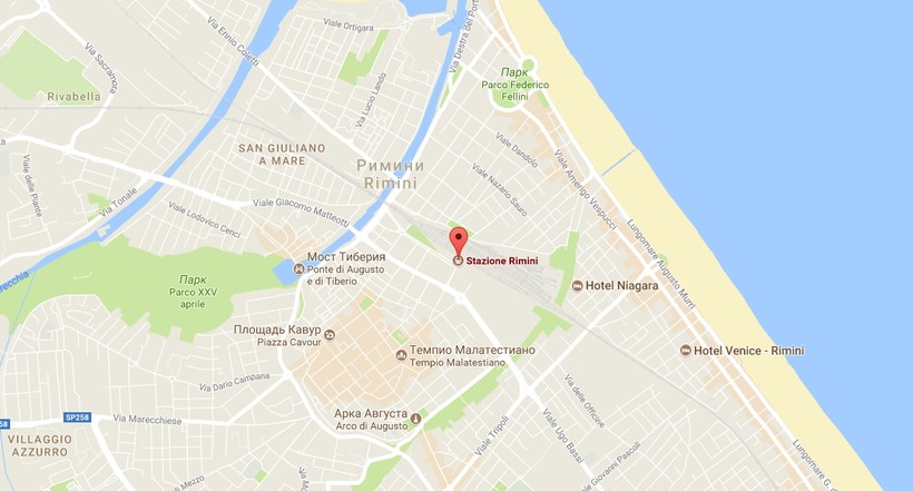 - Раз вы оказались в Римини, то наверняка часов в 10 утра вас можно будет найти на центральном ж/д вокзале города. Пока не слишком жарко, предлагаю прогуляться по городу.