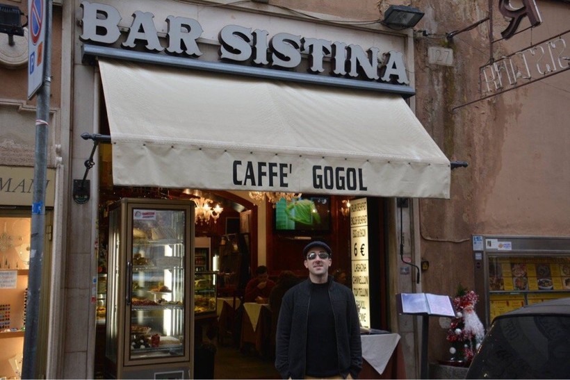 Поднимитесь по «скалинате» и поверните направо. Двигайтесь по улице Систина до дома № 125 – в этом доме жил великий мистик классической литературы – Николай Василевич Гоголь. В соседнем же здании вы увидите бар, предыдущее название которого наскоро залеплено новым – Caffè GOGOL. Над «обновленной» вывеской – посмотрите повыше, куда лениво не дотянулись горе-предприниматели – так и красуется прежнее название бара – Sistina Bar. Вот здесь не стоит ни перекусывать, ни выпивать: яичница и два бокала просекко обошлись нам в 30 евро (а это в два раза дороже средней цены). Но главное разочарование – не дороговизна. Спросите у работников заведения, кто такой Гоголь: местные «простаки» не знают, о ком это вы. Смеха ради, поэкспериментируйте!